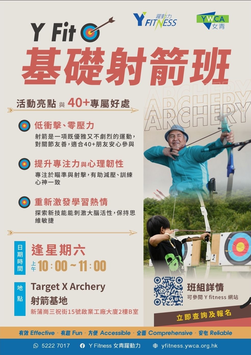 射箭唔止係運動,更係一種專注、平靜與力量的結合。無需任何經驗,專為40+人士設計,輕鬆入門,享受射箭樂趣!